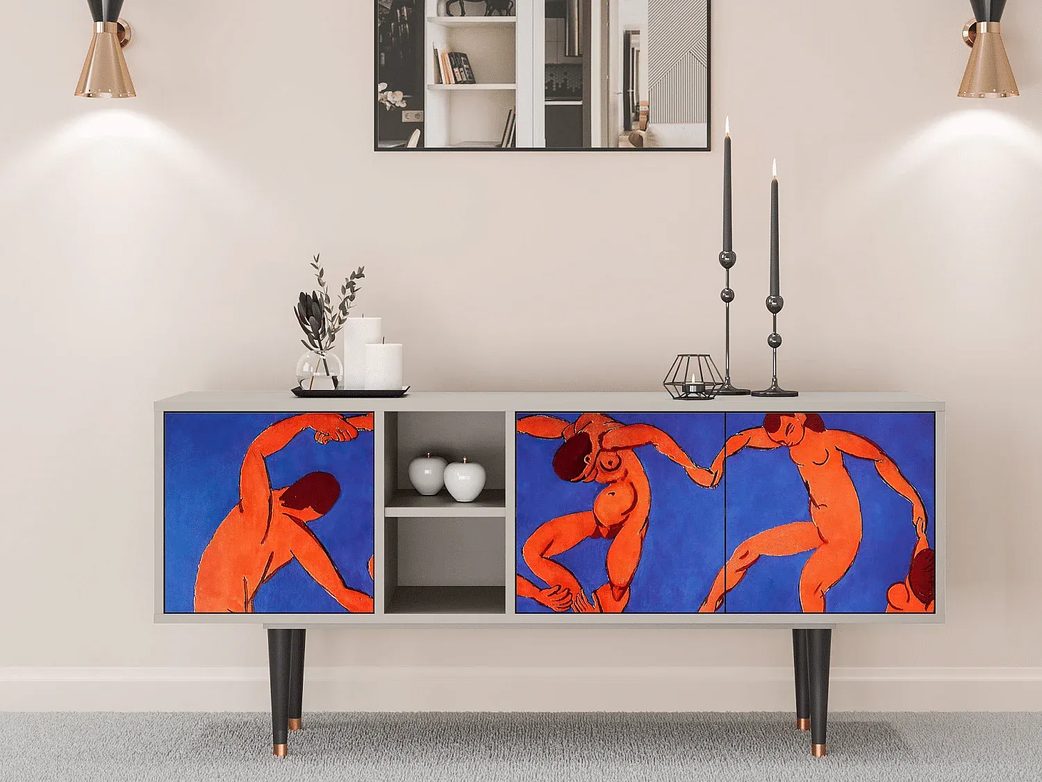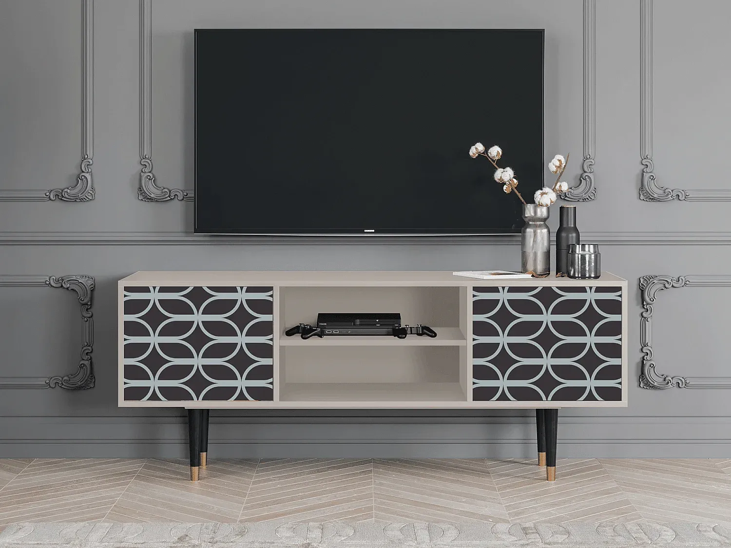 Moderner TV-Schrank mit Kunstmotiv, Sandfarbe
