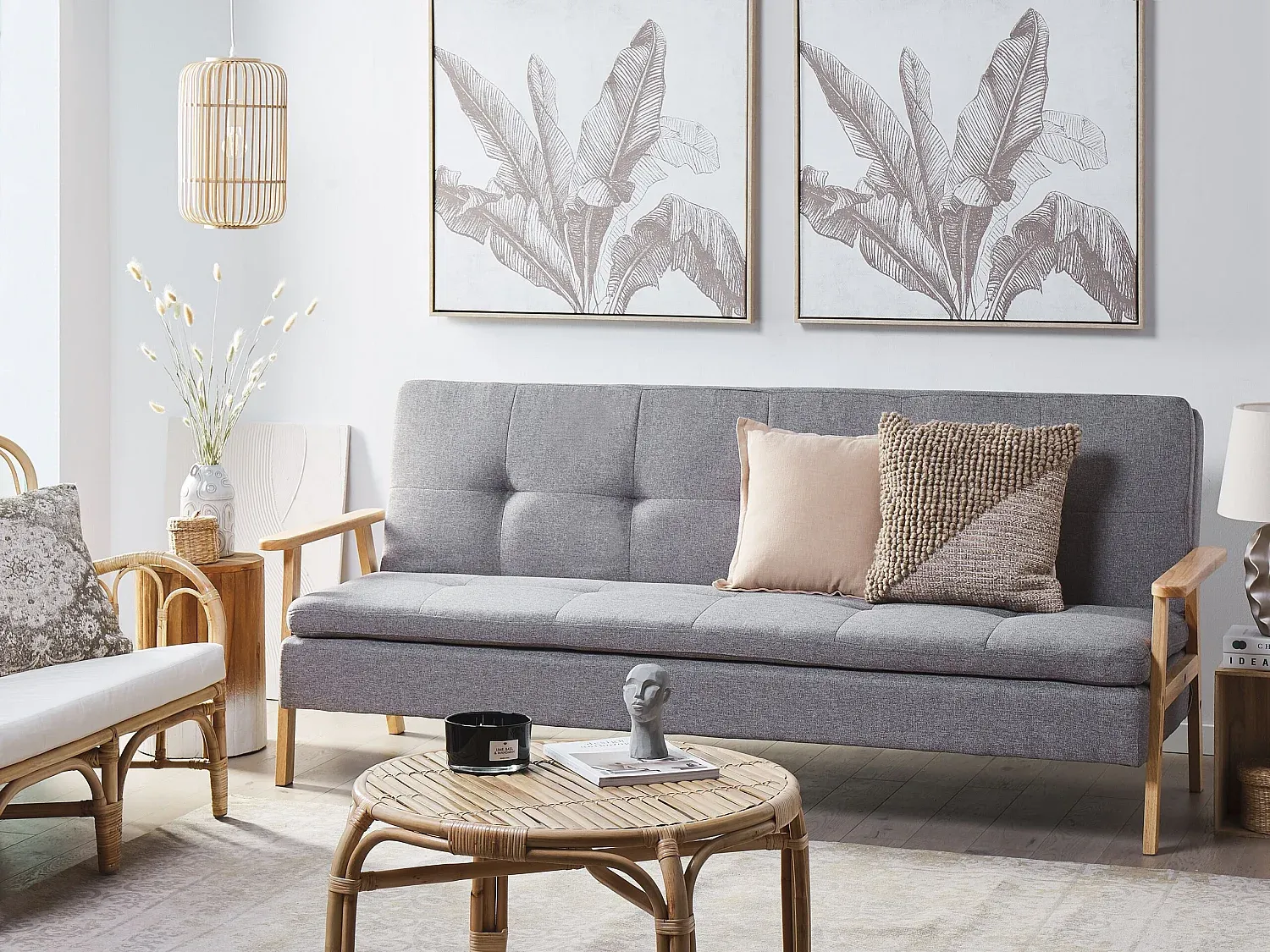 Bequemes Schlafsofa mit hellgrauem Bezug