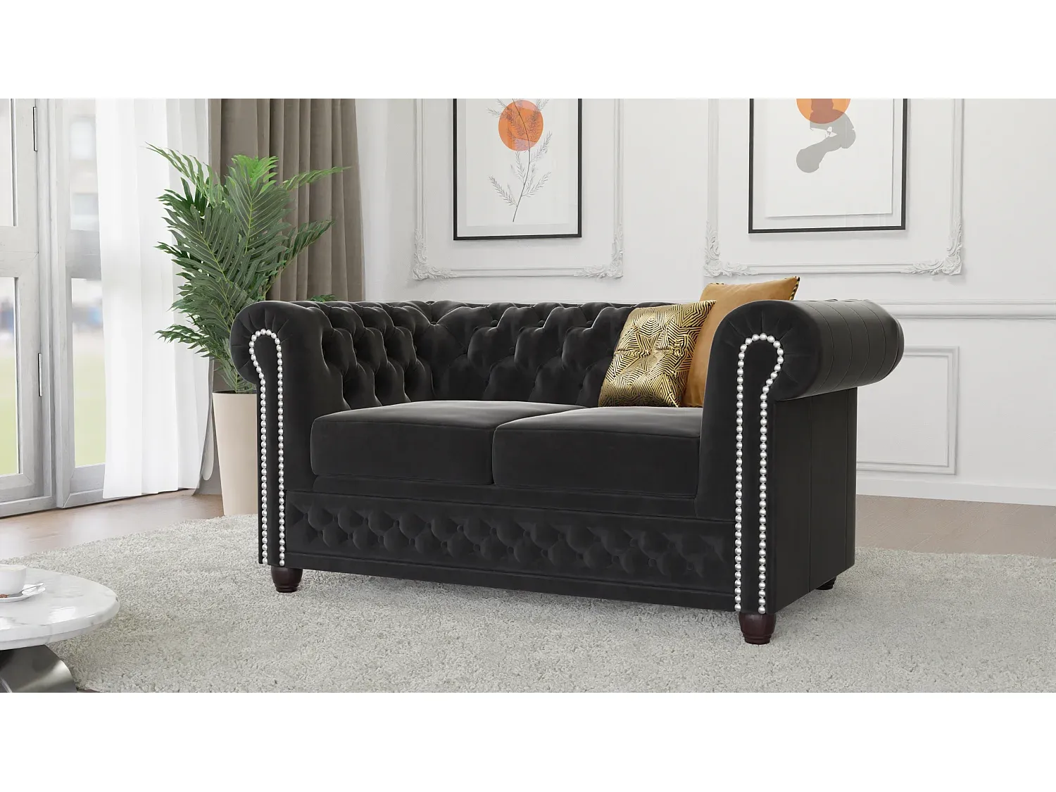Elegantes Zweisitzer-Sofa in Schwarz