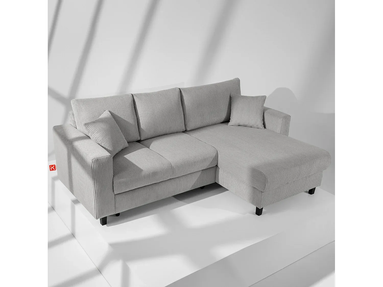 Ecksofa mit Schlaffunktion und Stauraum in Grau
