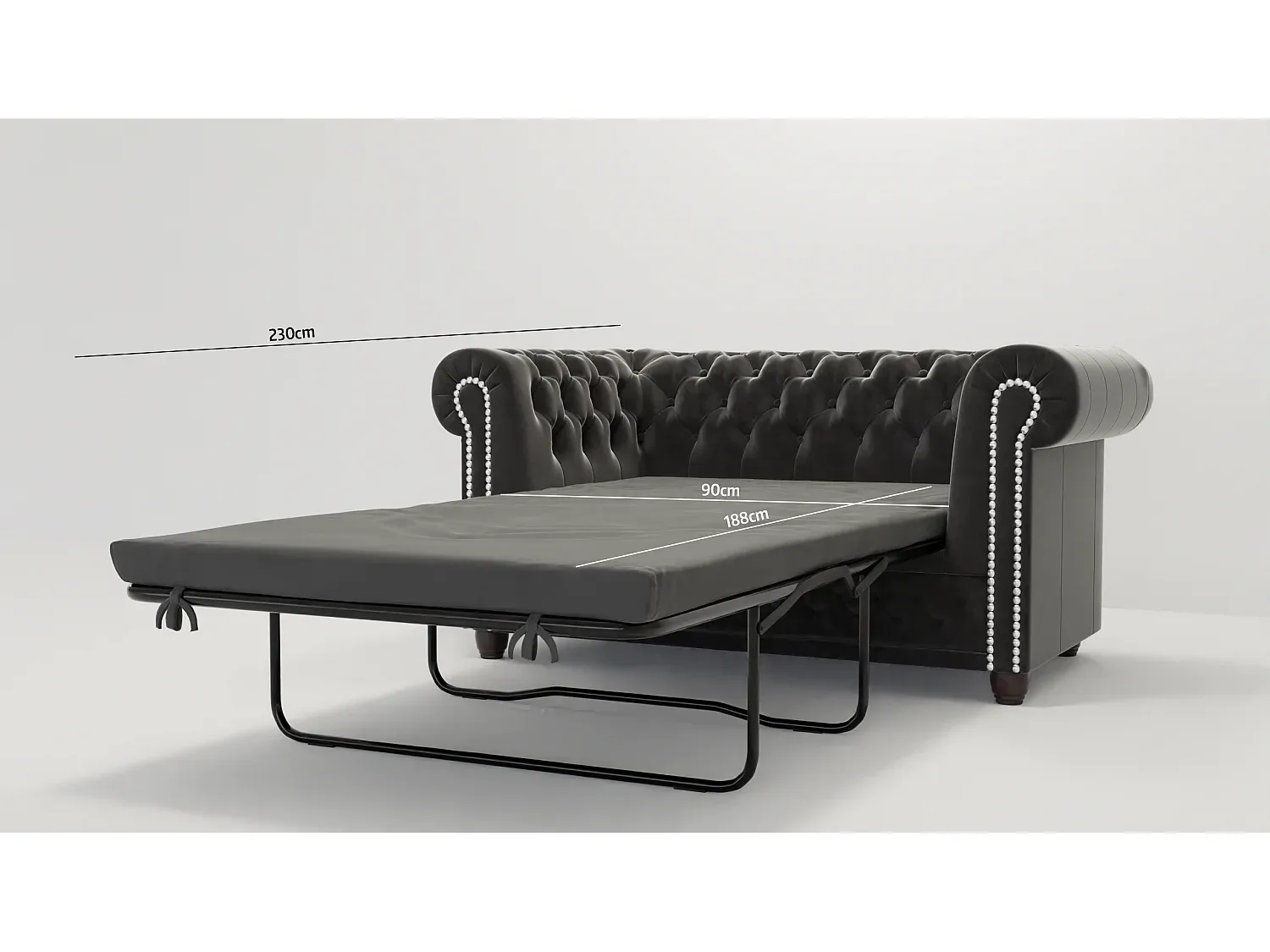 2-Sitzer Chesterfield Sofa mit Bettfunktion und Samtbezug