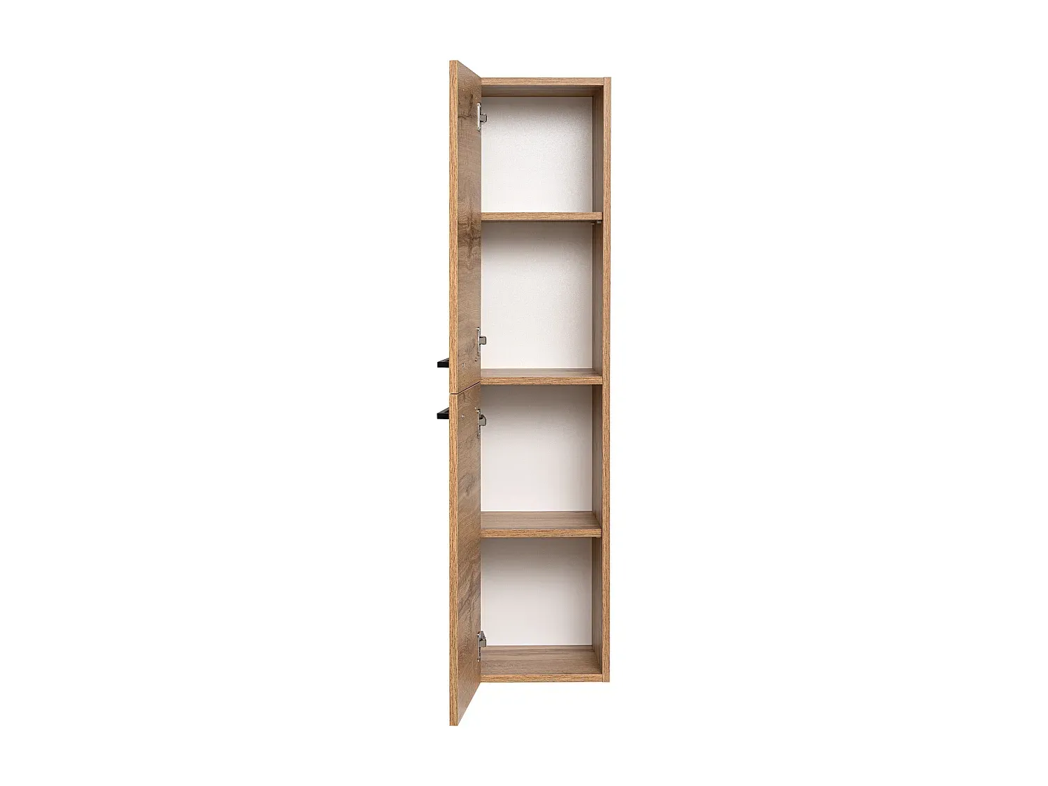 Aster ist eine Badmöbelkollektion, die Schlichtheit und Funktionalität kombiniert. Sie bietet ein Wotan-Eichendekor, das Wärme und einen modernen Charakter in die Einrichtung bringt. Die Aster-Sets sind als Kompositionen oder Einzelelemente erhältlich, darunter Schränke mit Waschbecken, Hochschrank und Spiegel. Schwarze Metallgriffe setzen einen stilistischen Akzent und kontrastieren mit der Eiche. Türen und Schubladen sind mit Soft-Close ausgestattet. Die Korpusse und Fronten bestehen aus langlebiger Schichtstoffplatte, die feuchtigkeitsbeständig und pflegeleicht ist. Die geräumigen Schubladen und das praktische Innere der Säule bieten viel Stauraum. Aster eignet sich für kleine und große Badezimmer und verbindet Aussehen mit Nutzungskomfort.