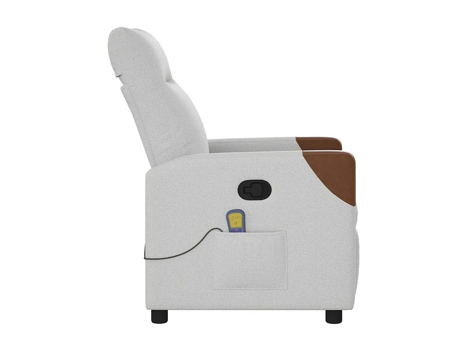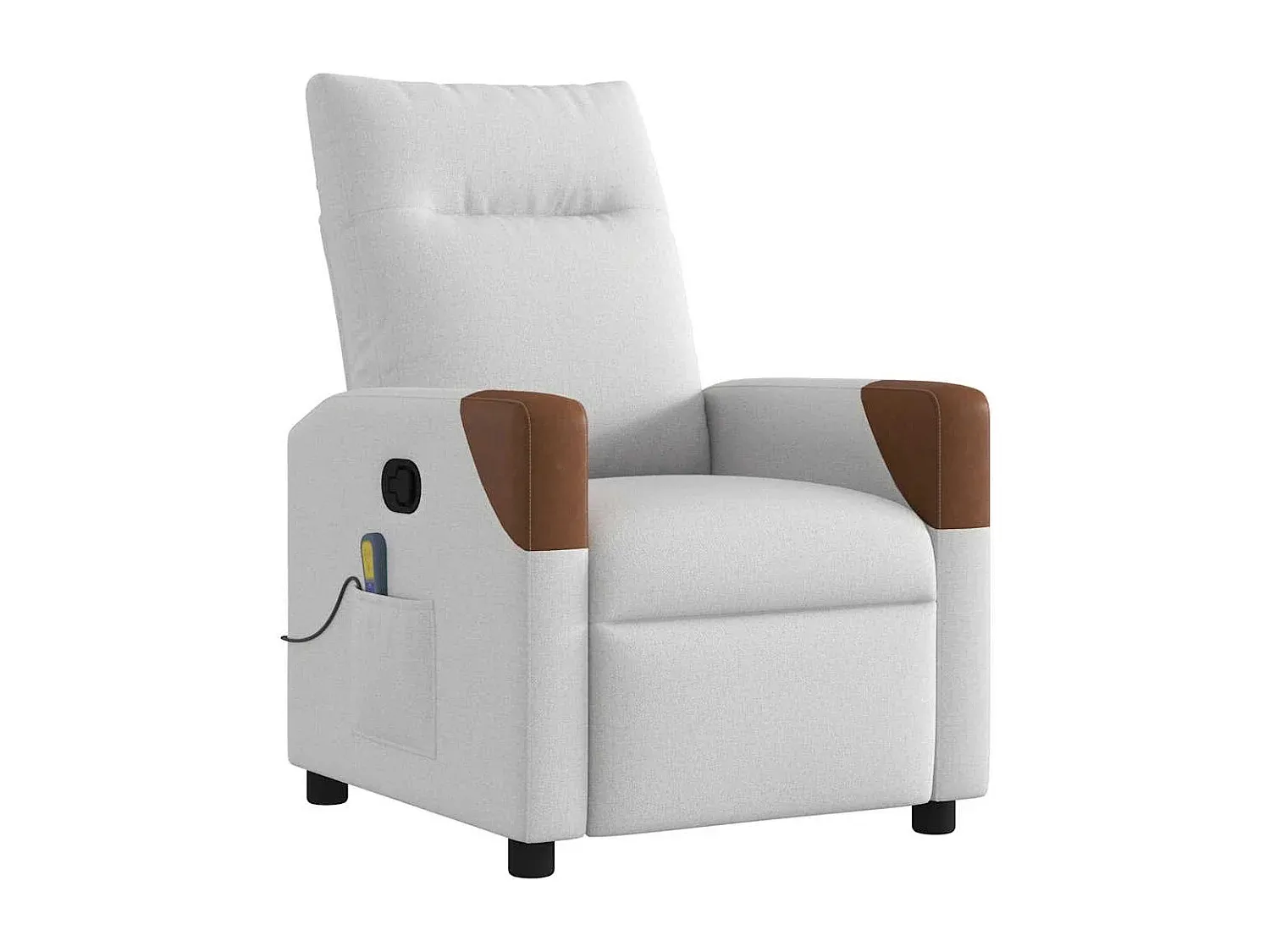 Dieser Massagesessel bietet eine manuelle Liegefunktion, die sich mit einem Griff an der Seite justieren lässt. Das Fußteil und die Rückenlehne können in verschiedene Positionen verstellt werden, wobei die Rückenlehne bis zu 135 Grad nach hinten geneigt werden kann. Eine Vibrationsfunktion mit 6 Massagepunkten sorgt für gezielte Massageoptionen, die über eine Handsteuerung wählbar sind. Der Sessel benötigt einen USB-Anschluss für die Massagefunktion. Die dichte Polsterung der Sitzfläche, der Rückenlehne und der Armlehnen bietet ein angenehmes Sitzgefühl. Der Stoffbezug ist schlicht und funktional. Der Sessel verfügt über eine praktische Seitentasche für die Aufbewahrung von Gegenständen. Ein stabiler Rahmen aus Holz und Metall verleiht dem Sessel seine Struktur. Max. Belastbarkeit: 110 kg. Montage erforderlich.