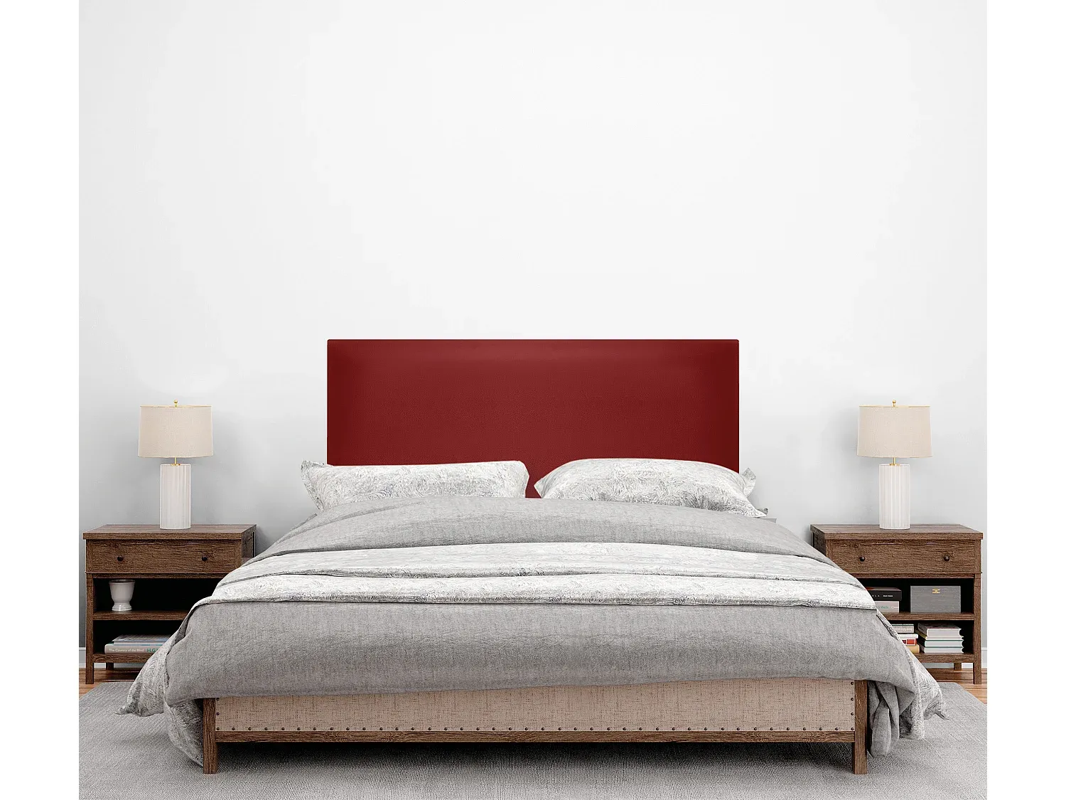 Kopfteil mit glattem Kunstlederbezug. Maße: 90 cm Breite, 4 cm Tiefe, 105 cm Höhe für 80/90 Betten. Zum Aufhängen gepolstert. Inklusive zwei 55 cm hohe Holzbeine für Gesamthöhe von 105 cm. Erhältlich in Kunstleder und Stoff in verschiedenen Farben und Größen.