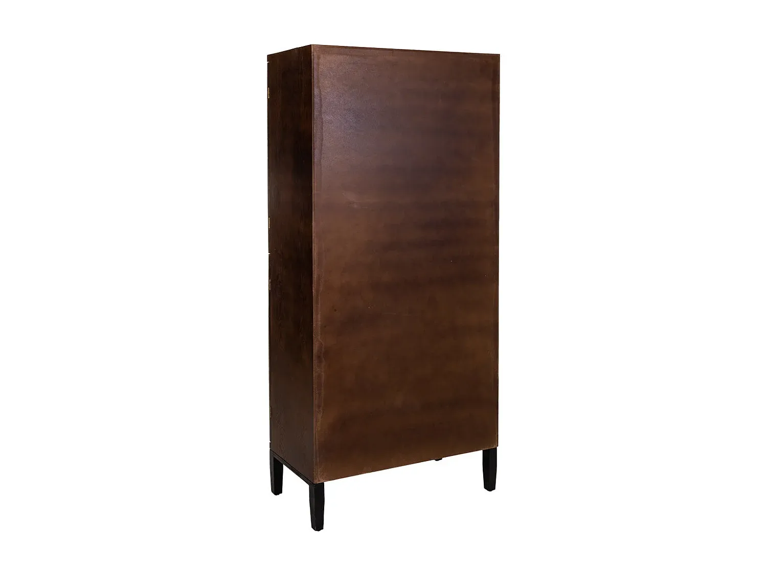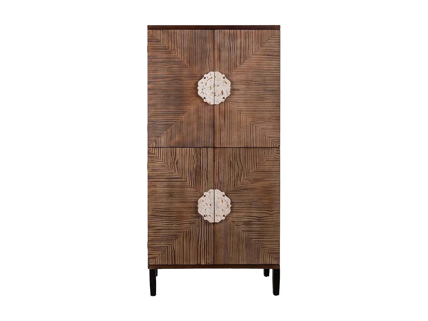 Dieser Holzschrank mit vier Türen misst 86 x 41 x 180 Zentimeter und bietet praktischen Stauraum. Geeignet für Schlafzimmer, Wohnzimmer oder Esszimmer, um Gegenstände ordentlich zu organisieren.