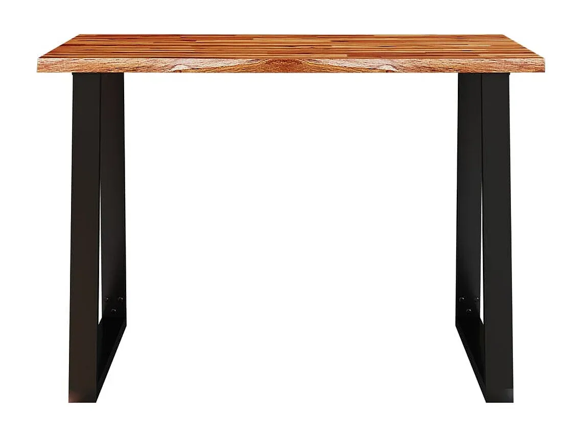 Esstisch mit einer Tischplatte aus Akazien-Massivholz und stabilen U-Beinen. Die Tischplatte ist aus Akazienholz gefertigt, einem tropischen Hartholz. Die Baumkante folgt der natürlichen Form des Holzes. Die U-förmigen, pulverbeschichteten Stahlbeine sorgen für einen industriellen Stil und Stabilität. Die Tischplatte eignet sich für Speisen, Getränke oder Dekoartikel. Material: Massives Akazienholz mit Öl-Finish, pulverbeschichteter Stahl. Abmessungen: 110 x 70 x 75 cm (L x B x H). Dicke der Tischplatte: 3 cm. Zusammenbau erforderlich: Ja.