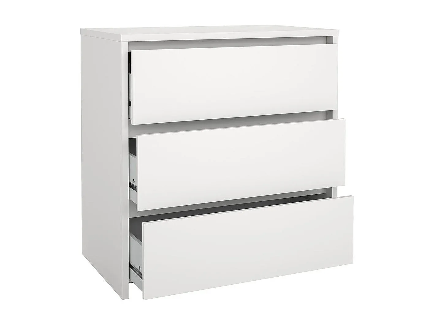 Die Kommode in Weiß bietet eine funktionale Aufbewahrungslösung für verschiedene Räume im Zuhause. Mit drei geräumigen Schubladen eignet sie sich zum Verstauen von Kleidung, Accessoires und Dokumenten. Das grifflose Design ergänzt einen modernen, minimalistischen Stil, passend für Schlafzimmer, Flur, Büro oder Wohnzimmer. Die weiße Oberfläche harmoniert leicht mit anderen Möbeln und Farben.