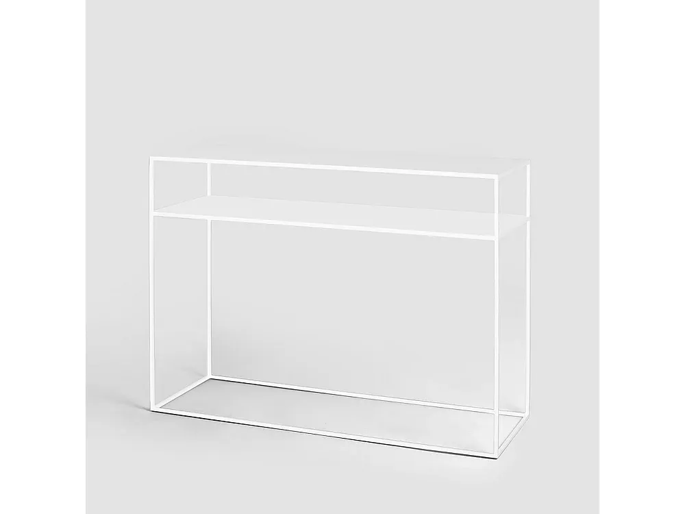 Die Konsole ist ein Tisch, der sich in verschiedene Räume integrieren lässt. Er kann als Couchtisch, Beistelltisch oder Konsole genutzt werden. Das schlichte Design ermöglicht eine Anpassung an verschiedene Umgebungen und Zwecke.
