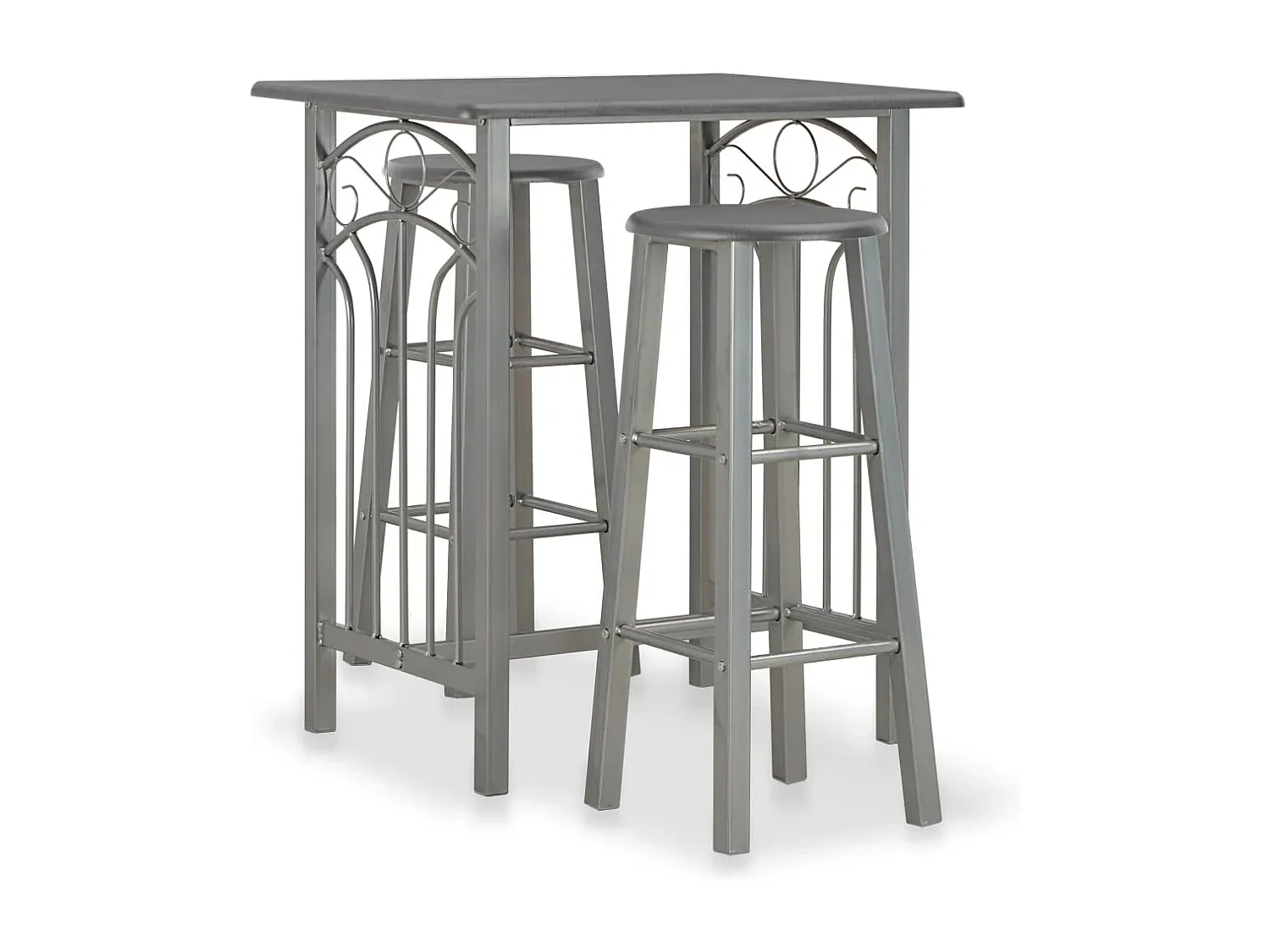 Dieses dreiteilige Barset aus Holz und Stahl ist ideal für Innen- und Außenbereiche wie Gärten, Bars oder Restaurants. Die Oberflächen sind pflegeleicht, und die Stahlrahmen bieten Stabilität. Die Barhocker können platzsparend unter dem Tisch verstaut werden. Die integrierten Fußstützen der Barhocker sind in zwei Höhen verstellbar. Das Set besteht aus einem Tisch und zwei Barhockern. Tischmaße: 72,5 x 55 x 82,5 cm. Barhocker Maße: 30 x 70 cm (Durchmesser x H). Maximale Tragfähigkeit: 110 kg.