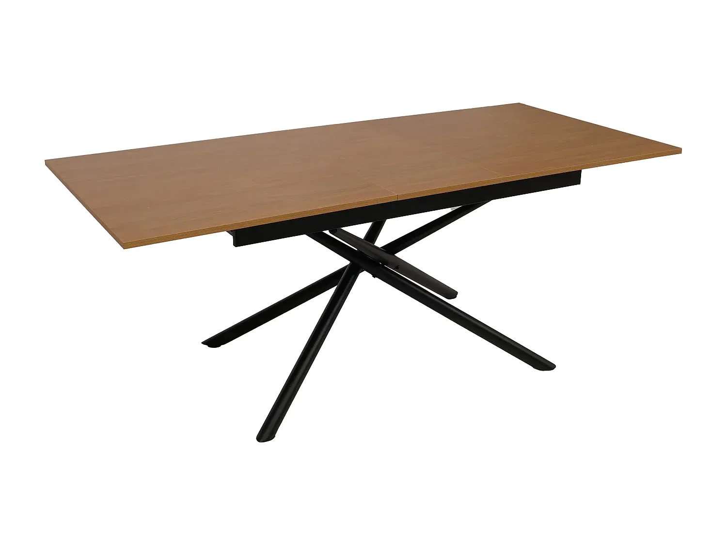 Dieser Esszimmertisch bietet eine ausziehbare Tischplatte und kann auf 200 cm verlängert werden. Das Design umfasst ineinanderlaufende Tischbeine und eine strukturierte Tischplatte. Der Tisch bietet Platz für bis zu 8 Personen und ist mit Fußbodenschonern ausgestattet. Er verfügt über ein stabiles Gestell aus Eisen und pflegeleichtes Material. Die Abmessungen betragen 77x160-200x90 cm mit einer Tischplattenstärke von 1,8 cm. Das Material umfasst ein Eisen-Gestell und eine MDF-Tischplatte aus Pappelholz. Der Tisch vereint modernes Design mit Funktionalität und ist einfach zu reinigen.