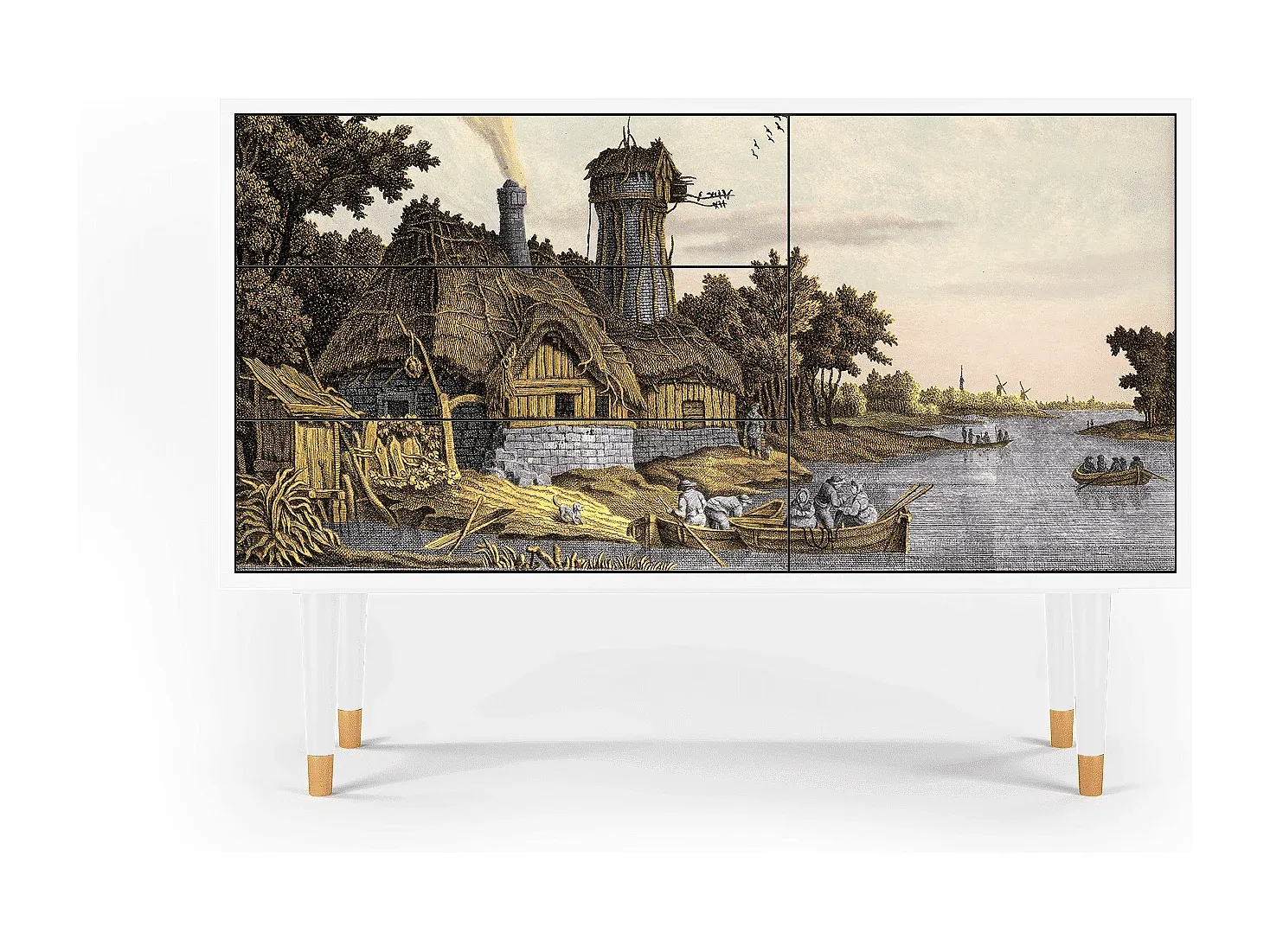 Dieses Möbelstück ist für kompakte Räume konzipiert und vereint Stil mit Funktionalität. Trotz seiner geringen Größe bietet es ein durchdachtes Design mit intelligenter Stauraumlösung. Die Oberfläche ist mit einem schützenden Lack versiegelt, der für Langlebigkeit sorgt. Die stabilen Holzbeine sind mit Metallelementen kombiniert, um Stabilität zu gewährleisten. Maße: Breite: 115 cm, Höhe: 84 cm, Tiefe: 41 cm.
