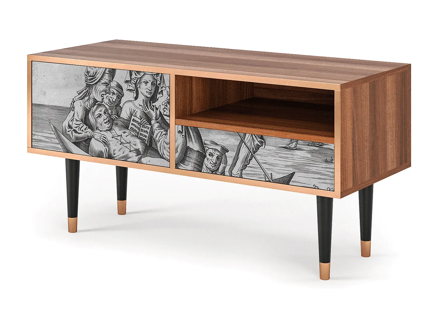 Der T3 nutzt den vorhandenen Raum effektiv. Kompakt und funktionsfähig, bietet er Stauraumlösungen für ein aufgeräumtes Ambiente. Das Design kombiniert praktischen Nutzen mit ästhetischem Wert. Die Fronten sind präzise gefertigt mit UV-Druck, und die Oberfläche ist lackiert für Widerstandsfähigkeit. Der T3 steht auf stabilen Holzbeinen mit Metallelementen. Geeignet für verschiedene Einrichtungsstile. Erhältlich in mehreren Farben und Designs. Maße: Breite: 115 cm, Höhe: 59 cm, Tiefe: 48 cm.