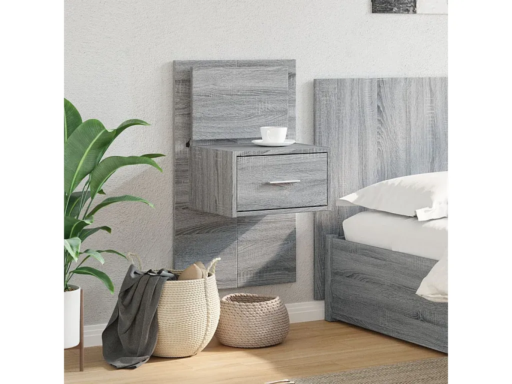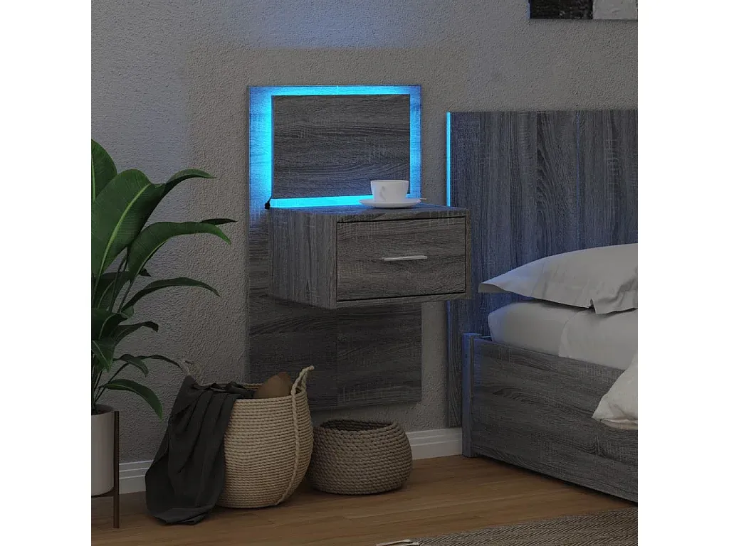 Moderner Wand-Nachttisch mit LED-Beleuchtung in Grau