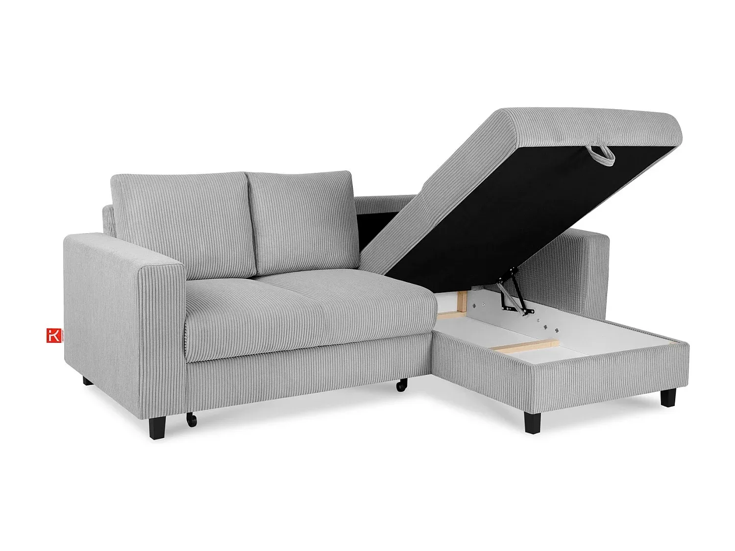 Das Ecksofa mit Schlaffunktion bietet Funktionalität und Komfort. Das Gestell aus massiven Holzarten sorgt für Stabilität im täglichen Gebrauch. Materialien wie Span- und Faserplatten gewährleisten eine lange Nutzungsdauer. Der Sitz ist mit T2842-Schaum und Federn ausgestattet. Eine ausklappbare Funktion und der Bettkasten bieten zusätzlichen Nutzen. Der Kordstoff schafft eine gemütliche Atmosphäre. Das Klappsystem ermöglicht eine einfache Bedienung. Die Rückenkissen sorgen für Komfort. Erhältlich in verschiedenen Farben.