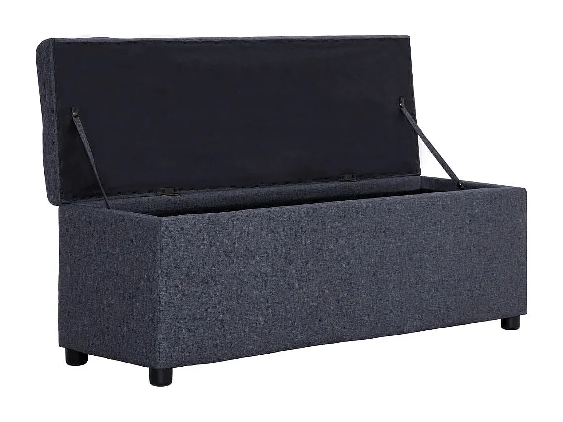 Diese Aufbewahrungsbank bietet eine praktische Lösung für Wohnzimmer oder Flur. Die weiche Polsterung sorgt für Komfort. Mit einem inneren Staufach ausgestattet, bietet die Bank Platz zur Aufbewahrung verschiedener Gegenstände. Farbe: Dunkelgrau. Material: Polyester. Gesamtmaße: 116 x 38 x 43 cm.
